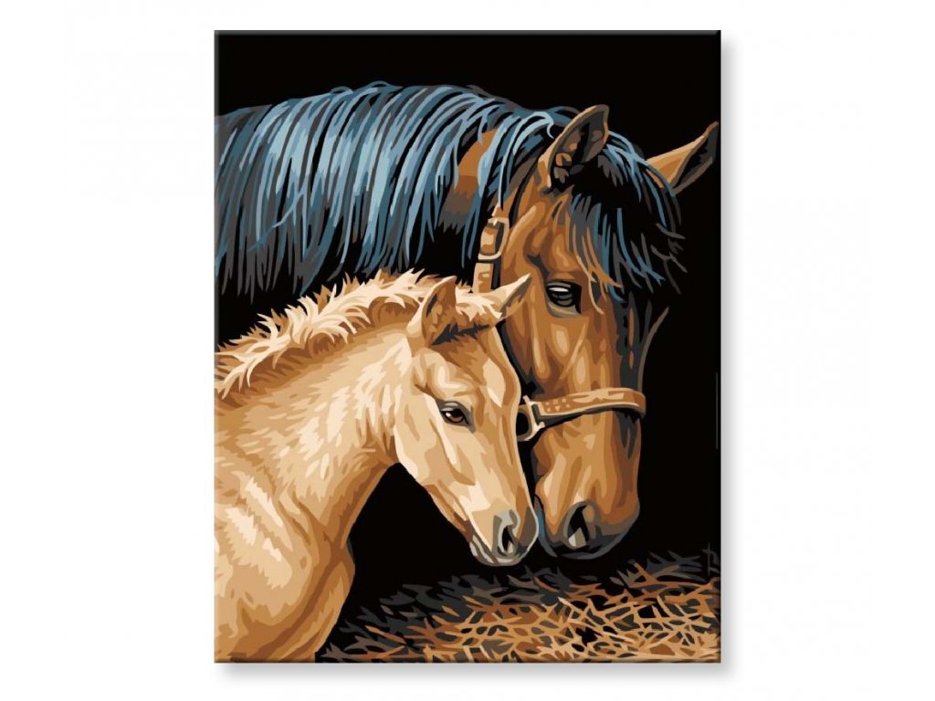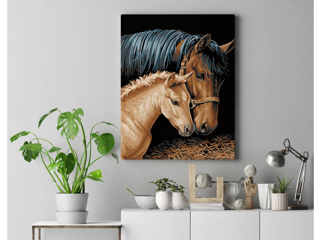 Mateřská láska a oddanost doslova dýchá z tohoto obrazu. Klisna a hříbě na vás upínají své nádherné oči v tichém pohledu. Koně jsou nádherná a vznešená zvířata. Jejich majestátnost na vás doslova dýchne při každém pohledu na tento obraz. Symbol pokračování života zůstává zachován.