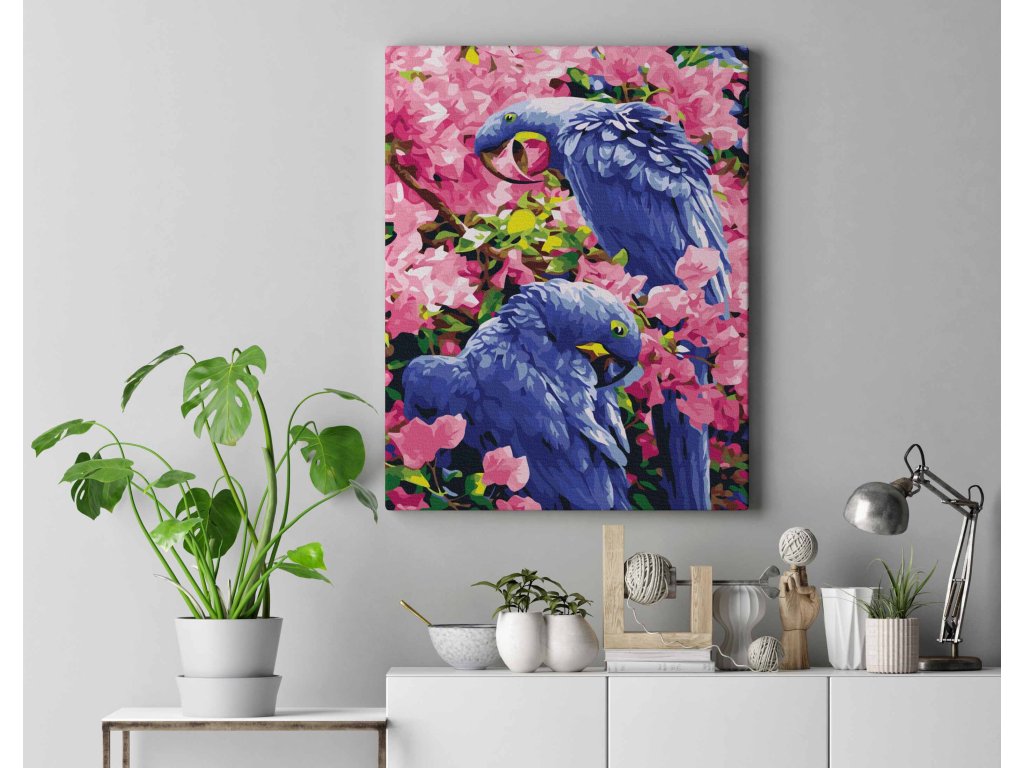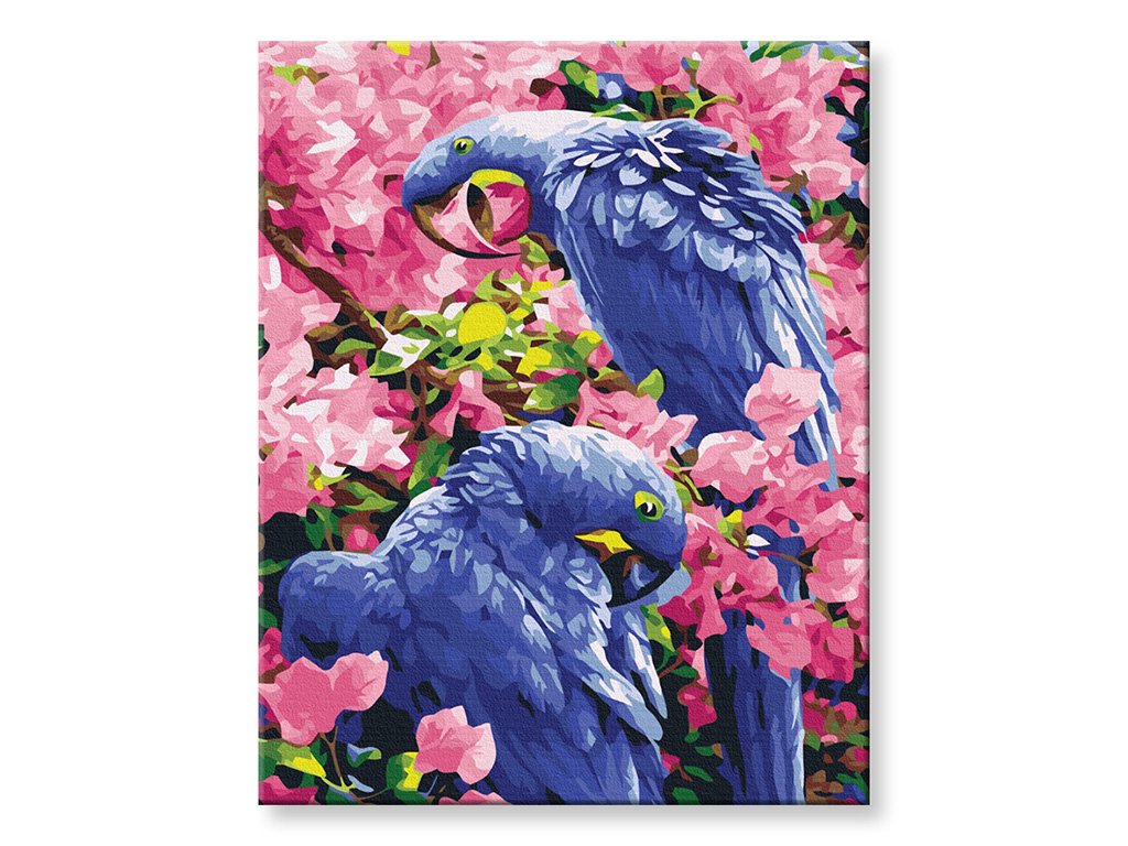 Vítáme vás. Produkt Malování podle čísel - Papoušci v květinách kupující pořizují třeba jako pozornost k rodinným sešlostem. Namalujte radost. Omalovánka je z kategorie Zvířata.